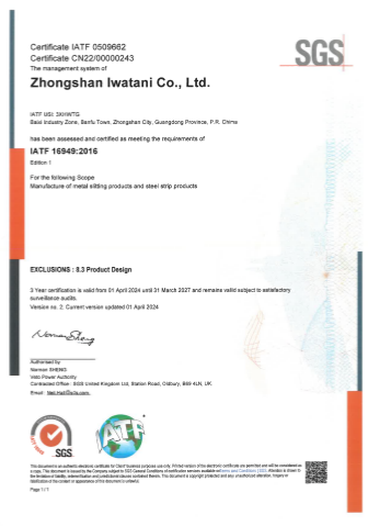 Zhongshan Iwatani Co., Ltd. (ZIC) has obtained ISO9001, ISO14001, ISO45001, IATF16949 certifications.