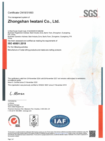 Zhongshan Iwatani Co., Ltd. (ZIC) has obtained ISO9001, ISO14001, ISO45001 certifications.